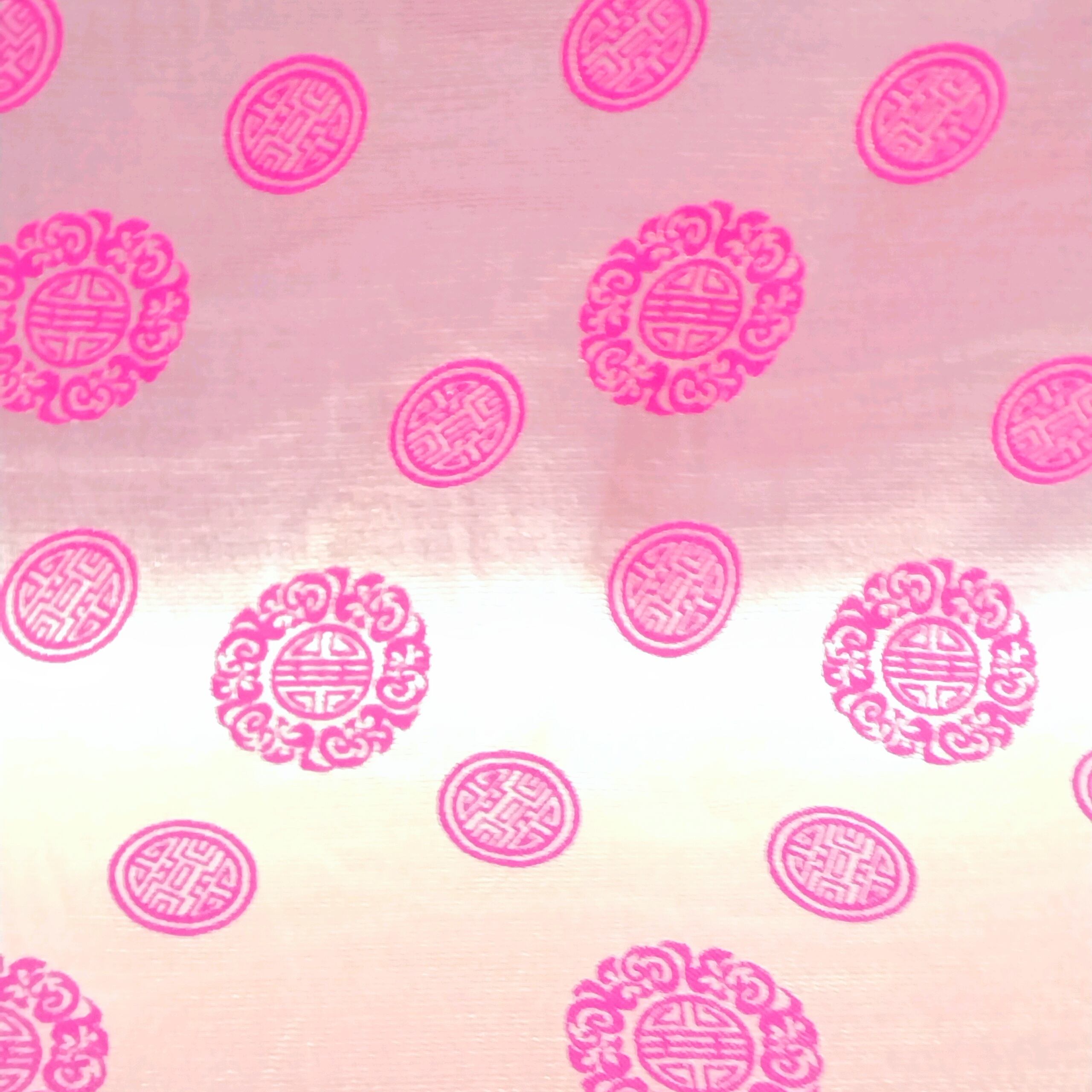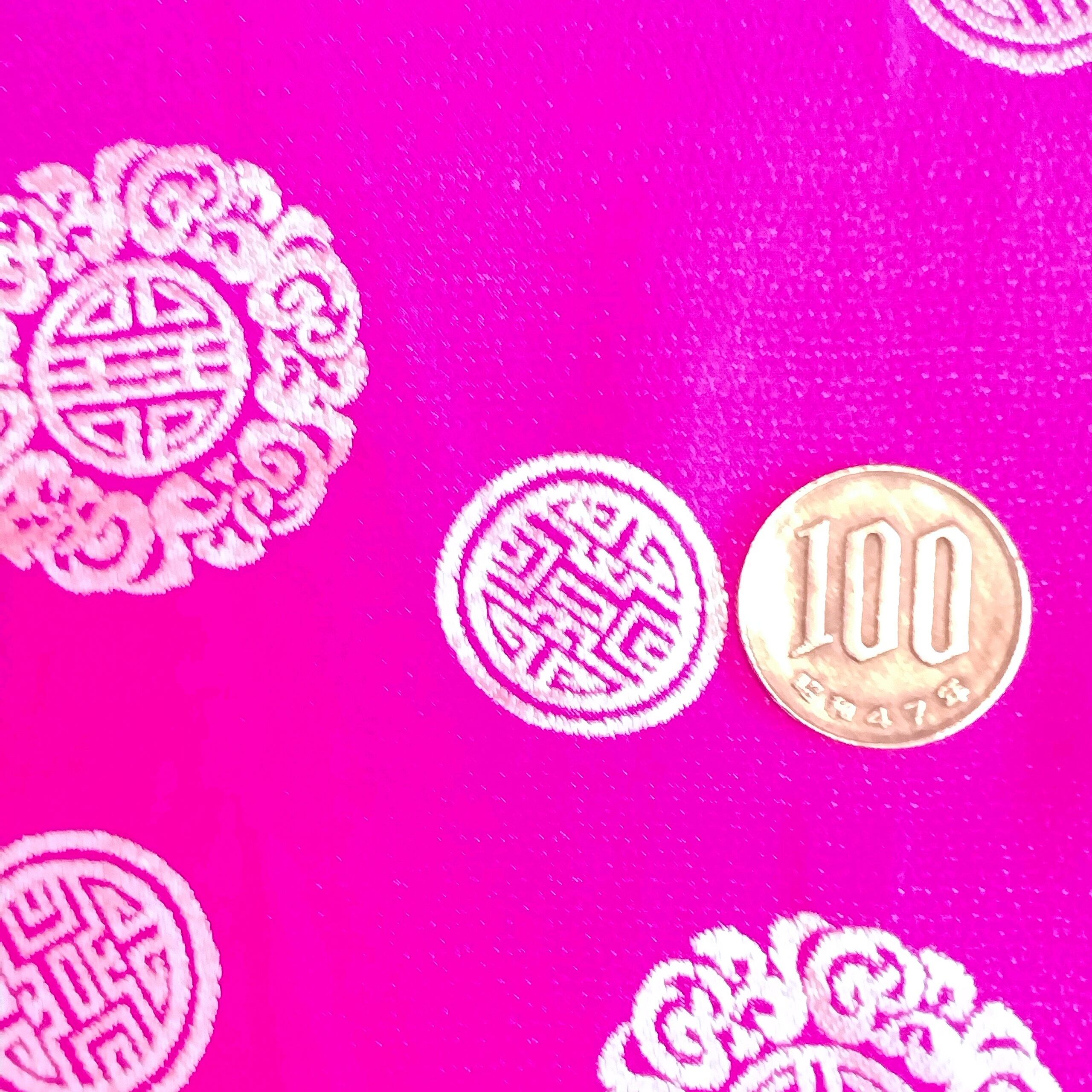 鮮やかなネオンピンクの地にメタリックなシルバーで漢字のモチーフがちょっぴり大胆に描かれています。