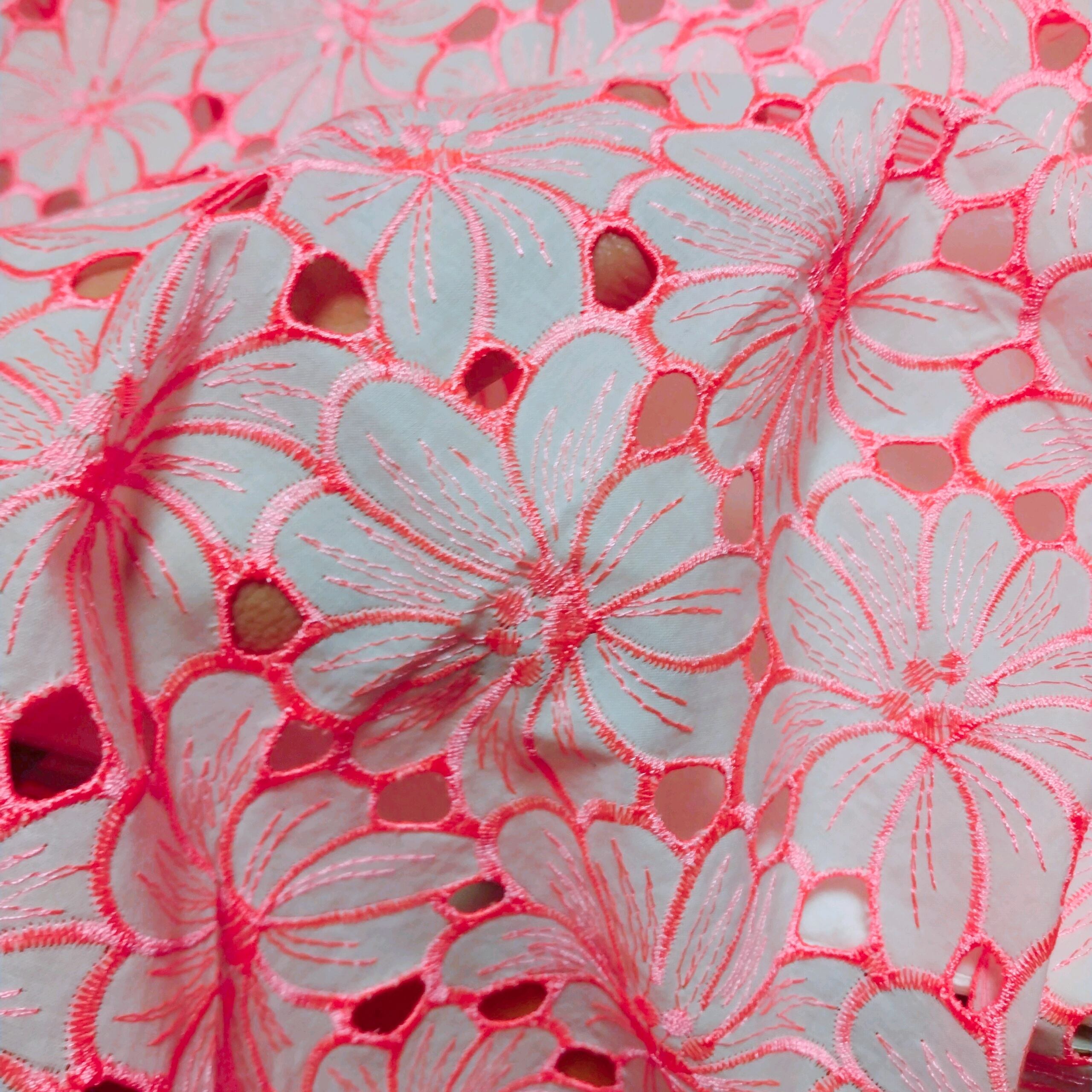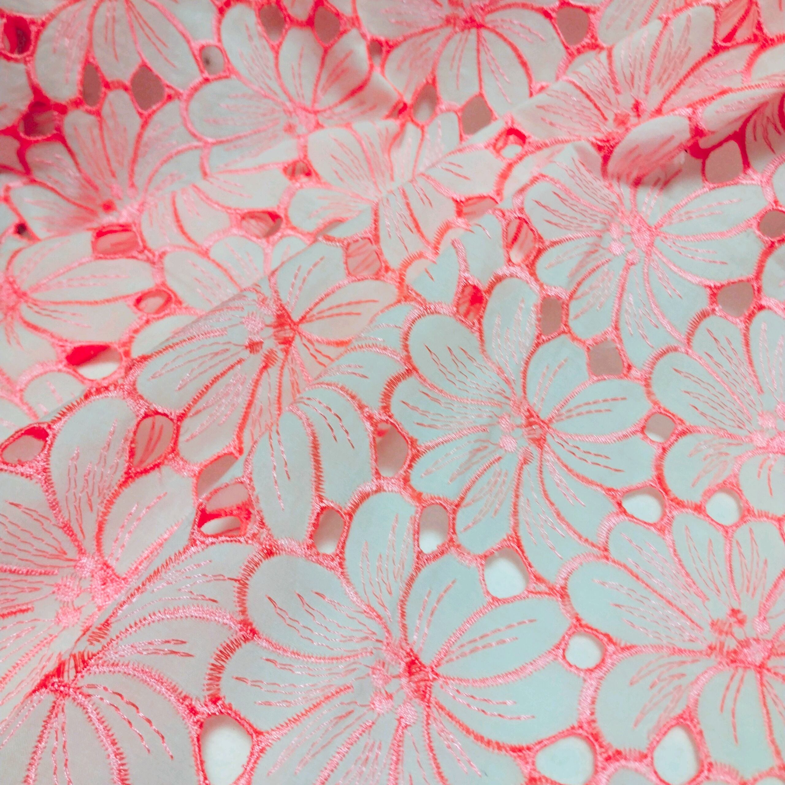 カットクロス ネオンピンクの大ぶりお花 切り抜き模様