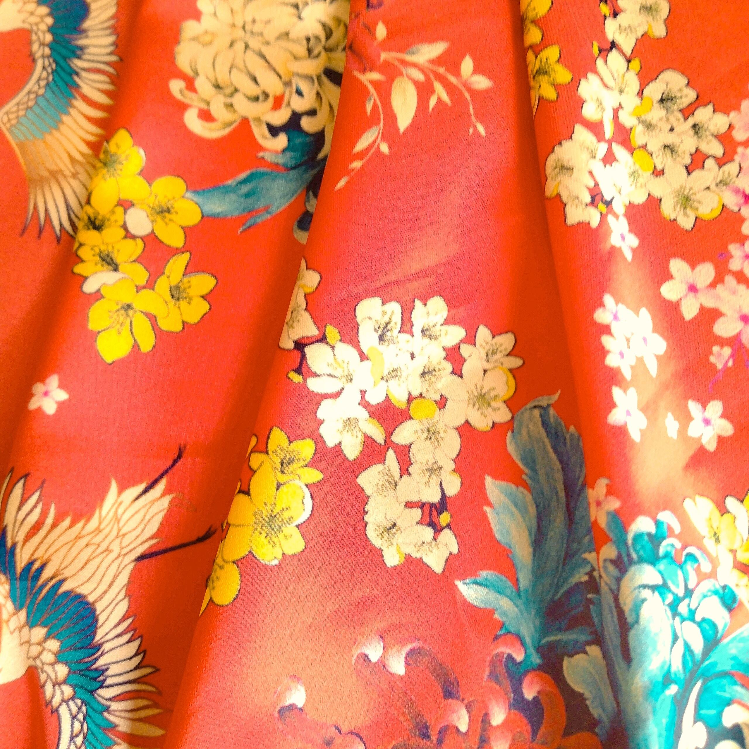 鶴と菊の花?の模様がレトロなカットクロスです。